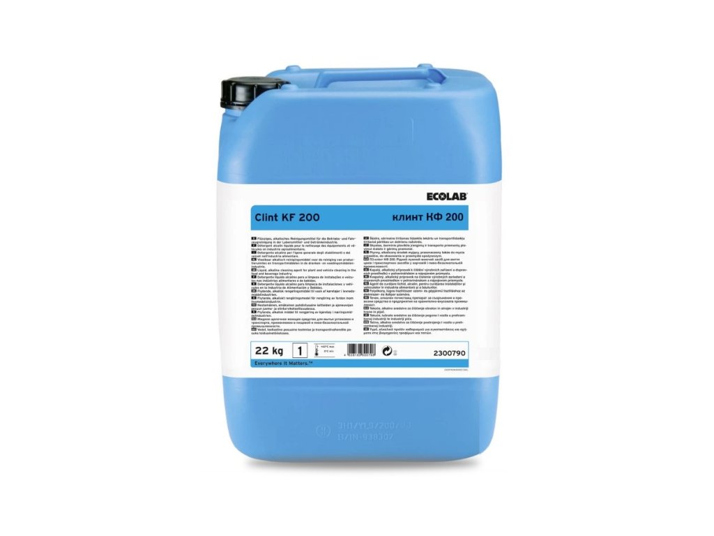 Clint KF 200 je profesionální alkalický čisticí prostředek určený pro průmyslové i automobilové použití. Vyniká schopností rychle a snadno rozpouštět olejové, mastné nečistoty, prach, šmír a maziva z motorů, karosérií, podvozků, drážních vozidel a dalších tvrdých povrchů. Je dostupný ve velkém 22litrovém balení pro ekonomické dávkování.