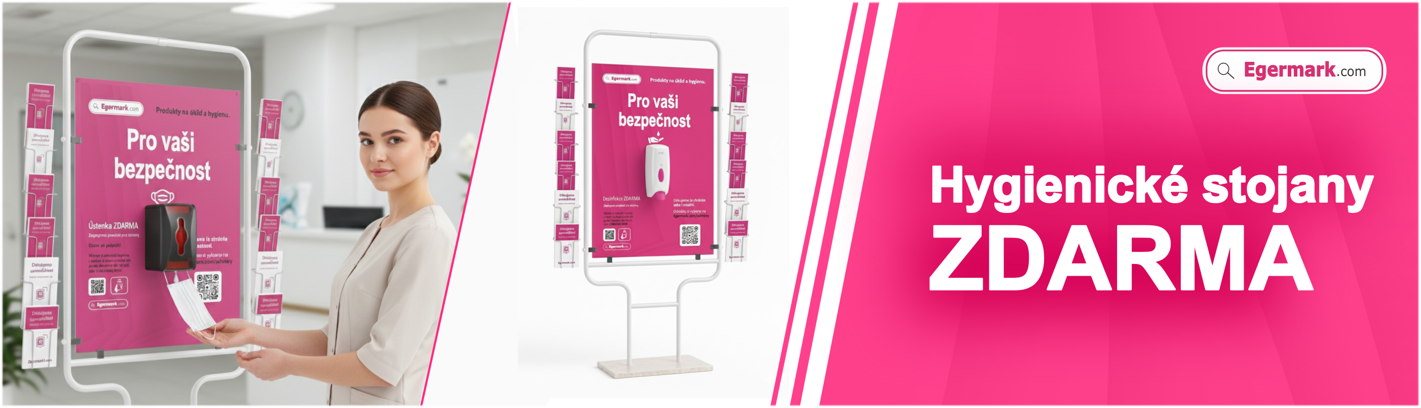 Egermark poskytuje veřejně přístupným provozovnám hygienické stojany ZDARMA. Vy poskytnete jen prostor a získáte stojany i s náplní a pravidelným doplňováním plně v režii Egermark, který touto spoluprácí získává reklamu, kterou má na stojanu. Kontaktujte nás a získejte ještě dnes bezplatný hygienický stojan se zásobníkem na dezinfekci nebo na ústenky.