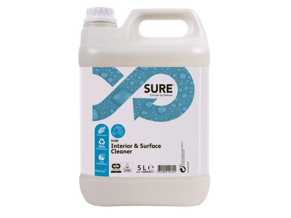 Profesionální, koncentrovaný a ekologický čisticí prostředek pro každodenní údržbu všech voděodolných tvrdých povrchů. SURE Interior & Surface Cleaner je ideální pro podlahy, stěny, stropy, dveře a běžné vybavení, včetně použití v potravinářských provozech. Vyrobený na rostlinné bázi, 100% biologicky odbouratelný a maximálně šetrný k životnímu prostředí.