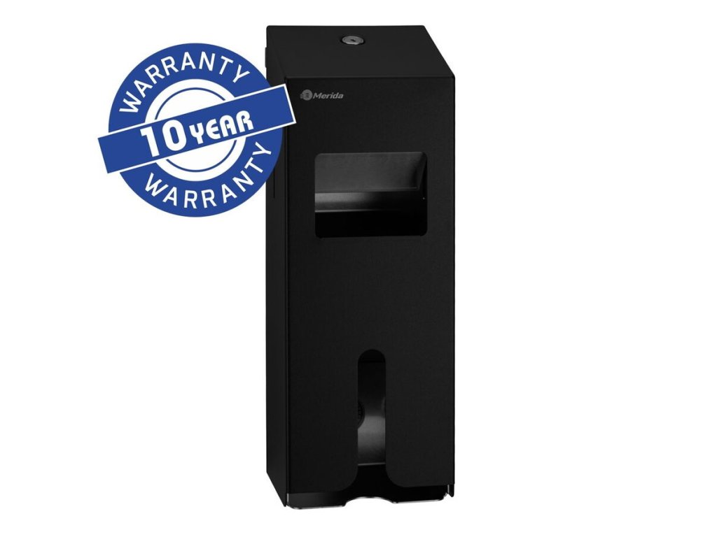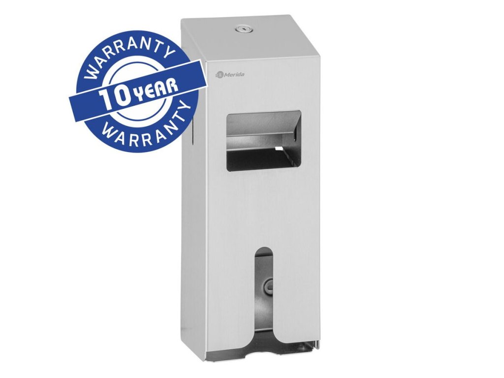 Zásobník na hygienické vložky a tampony Merida představuje spolehlivé a estetické řešení pro toalety s vysokými nároky na čistotu, pohodlí a diskrétnost. Díky automatickému vysunutí další vložky nebo tamponu po vyjmutí jednoho kusu je zajištěn komfortní a hygienický provoz, který ocení uživatelky v kancelářích, zdravotnických zařízeních, hotelech i školách.